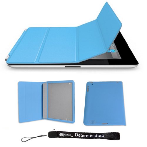 Blue Protective Four Folded Smart Slim Case Cover Adjustable Stand for Apple IPAD 2 Newest Model + Includes a eBigValue (TM) Determination Hand Strap Key Chain Features