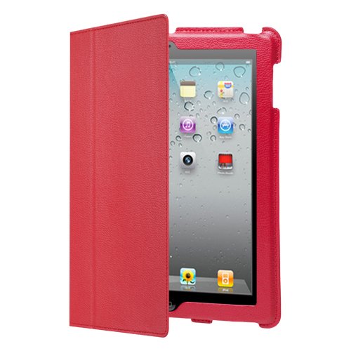 CE Compass Red Leather Smart Case Cover Flip With Stand Magnetic Automatically Wakes and Puts the iPad 2 to Sleep includes 1x Free LCD Screen Protector. Superior Quality Design Features