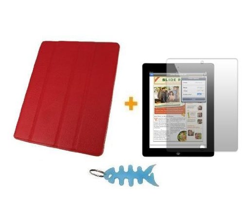HappyZone - Apple Ipad 2 Smart Case Cover (Red) With Screen Protector and Fishbone Style Keychain Features