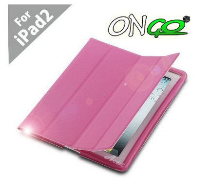 Ipad 2 Super Smart Cover Case By Ongo (Tm) Ultra Slim Folio Stand for 2nd Generation Ipad Plus Free Ongo (Tm) Ipad 2 Screen Protector Wifi/3g Model 16gb, 32gb, 64gb Newest Model (Pink) Features
