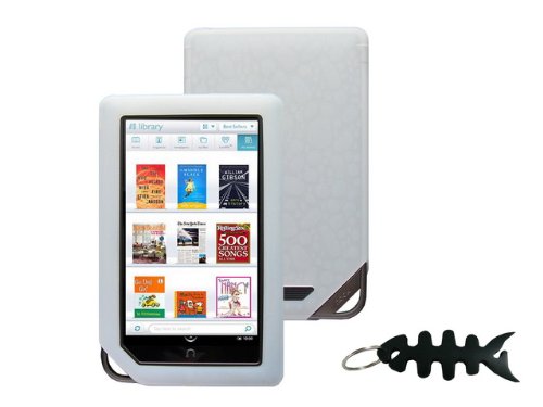 iShoppingdeals - for Barnes & Noble NOOK COLOR eBook Reader Tablet WiFi, Clear White Soft Silicone Skin Case Cover And Smart Headphone Wrap Overviews